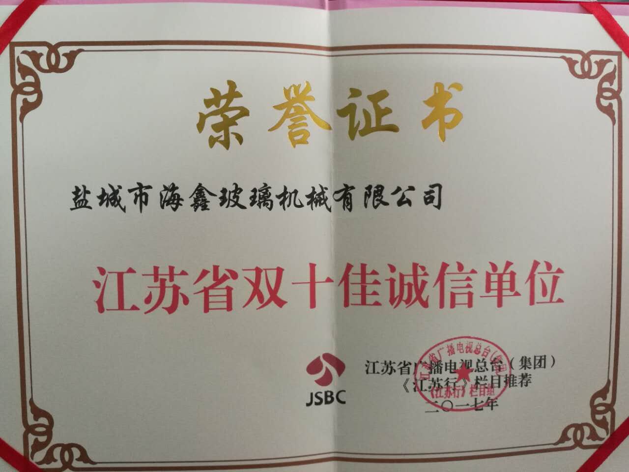 • 江蘇省雙十佳誠信單位